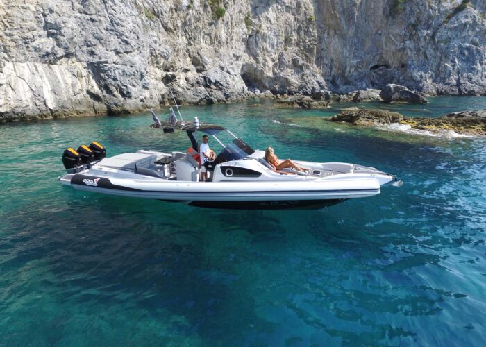 Le Mito 40 est le dernier-né de la manufacture du Vésuve. C’est un bateau de 40 pieds à triple motorisation hors-bord. Le look est soigné et les performances de navigation sont extraordinaires. Le Mito 40 est spacieux et joliment dessiné.