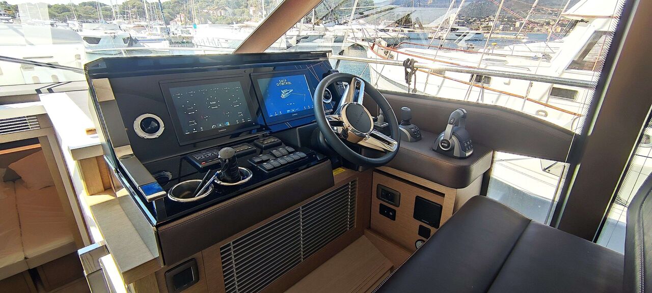 - Moteurs Volvo IPS 650 D6 480cv (x2) – Seulement 200 h d’utilisation : puissance, fiabilité et manœuvrabilité optimale grâce au joystick de commande.