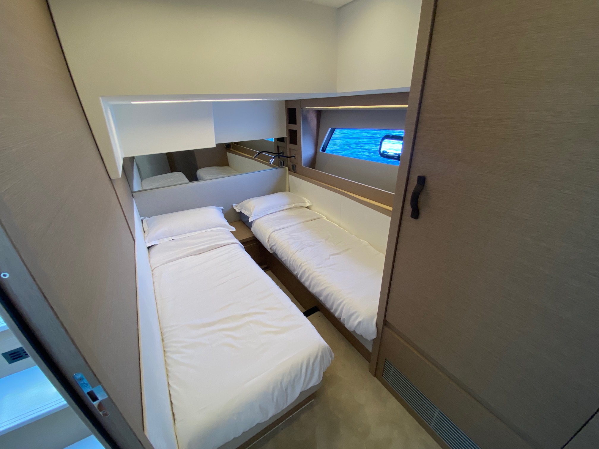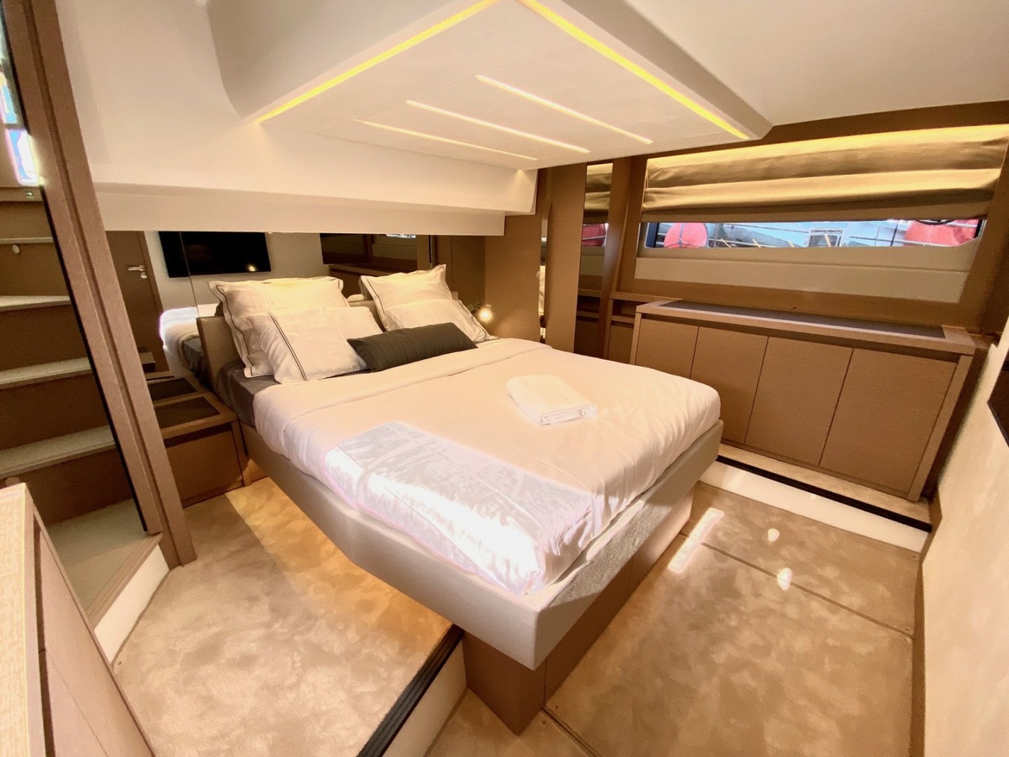 Avec ses 16,11 m de longueur et ses 4,49 m de largeur, ce Prestige 520 Fly offre un volume unique dans sa catégorie, capable d’accueillir jusqu’à 14 personnes à bord. Les 3 cabines spacieuses, dotées de 6 couchages et de 3 salles de bain,ainsi qu’une cabine marin avec salle de bain assurent intimité et bien-être lors de vos croisières.