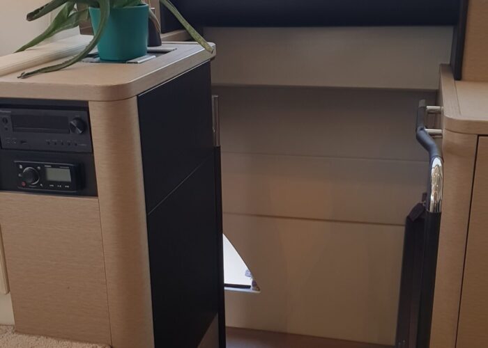 L’intérieur est agencé pour accueillir confortablement jusqu’à 7 personnes grâce à 3 cabines spacieuses et 1 cabine marin , et dispose de 2 salles de bain. Vous serez séduit par les équipements haut de gamme qui incluent notamment un réfrigérateur, un lave-vaisselle, un lave-linge, un sèche-linge, une télévision, et même une machine à café pour un confort optimal à bord. Les amoureux de la mer apprécieront la plateforme de bain hydraulique ainsi que le bain de soleil avant pour se prélasser sous le soleil et 3 joystick de manœuvres