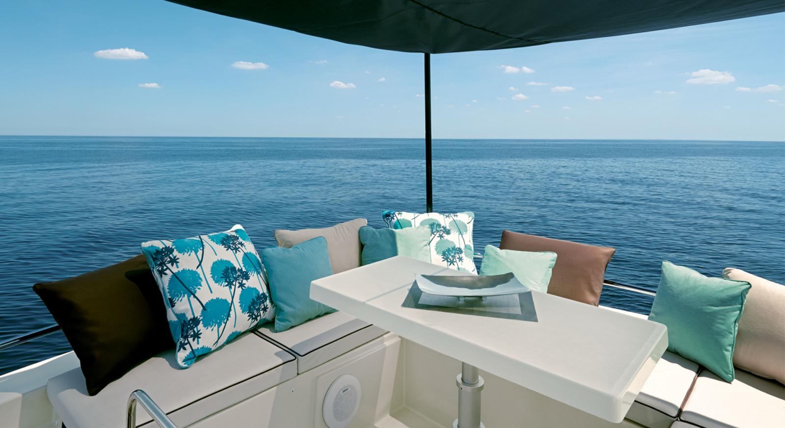 With 3 cabines spacieuses, 3 lits And 2 bathrooms, le Monte Carlo 5 S accueille confortablement jusqu’à 16 passagers. À bord, rien n’a été laissé au hasard pour votre confort : réfrigérateur, congélateur, micro-ondes, lave-vaisselle, générateur, climatiseur, chauffage… Vous profitez aussi d’un espace de vie ultra convivial avec cockpit teck, bain de soleil avant et arrière, plateforme de bain hydraulique, table en teck, douchette de cockpit, éclairage d’ambiance et voiles d’ombrage.